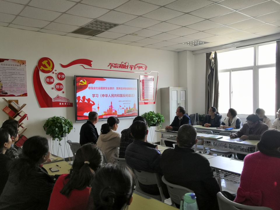 为深入贯彻《中华人民共和国反间谍法》等法规文件精神,全面增强国家安全意识和保密防范意识,2020年11月3日,制药工程学院党总支组织全体教师在501党员活动室开展了集体学习《中华人民共和国反间谍法》活动。