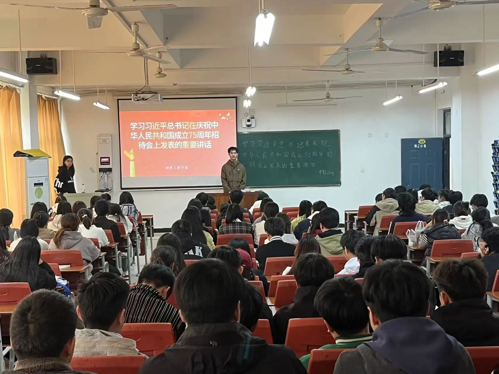 在主题团课上,各班团支书首先为同学们解读了习近平总书记在庆祝中华人民共和国成立75周年招待会上的重要讲话,带领同学们回顾了中华人民共和国成立75年来的艰苦历程与取得的诸多成就,并强调了习近平总书记提出的新时代新征程下党和国家的中心任务,着重指出习近平总书记重要讲话精神对于当代大学生的指导意义。