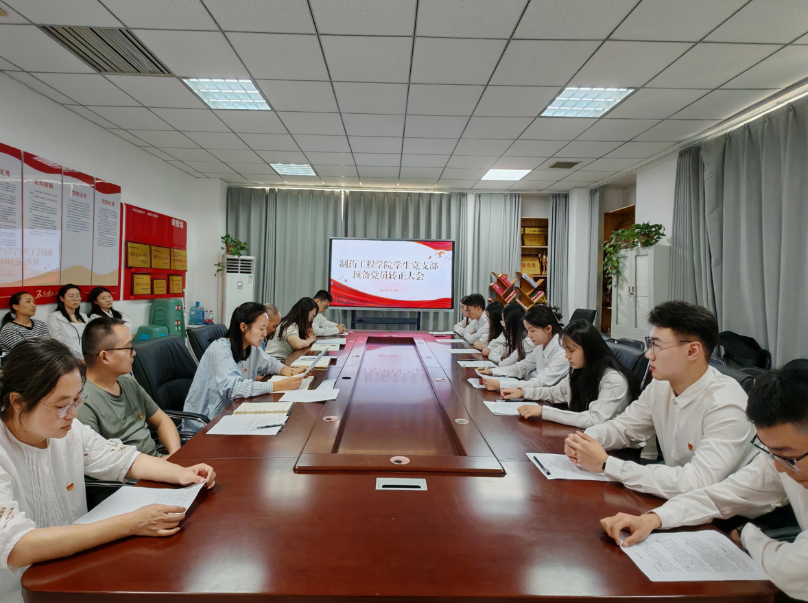 为进一步强化党员队伍建设,增添党员队伍的生机与活力,推动党建工作高质量发展,制药工程学院党总支学生支部于5月29日召开预备党员转正大会,制药工程学院党总支书记窦传斌、学生支部书记白小茗、学工支部全体党员教师、10名预备党员参加会议。会议由学生支部书记白小茗主持。