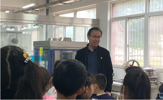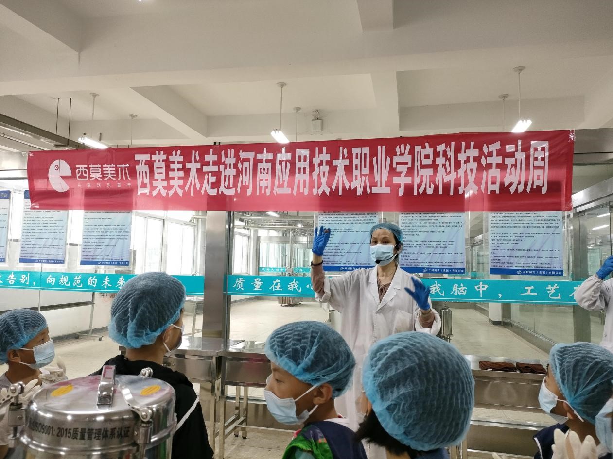来自正大教育培训中心首批的西莫美术培训百余名小学生齐聚河南应用技术职业学院制药工程学院固体制剂实训车间,首先由制药工程学院院长韩恩远致欢迎词,并耐心细致地为参与活动的学生讲解活动中的安全注意事项。