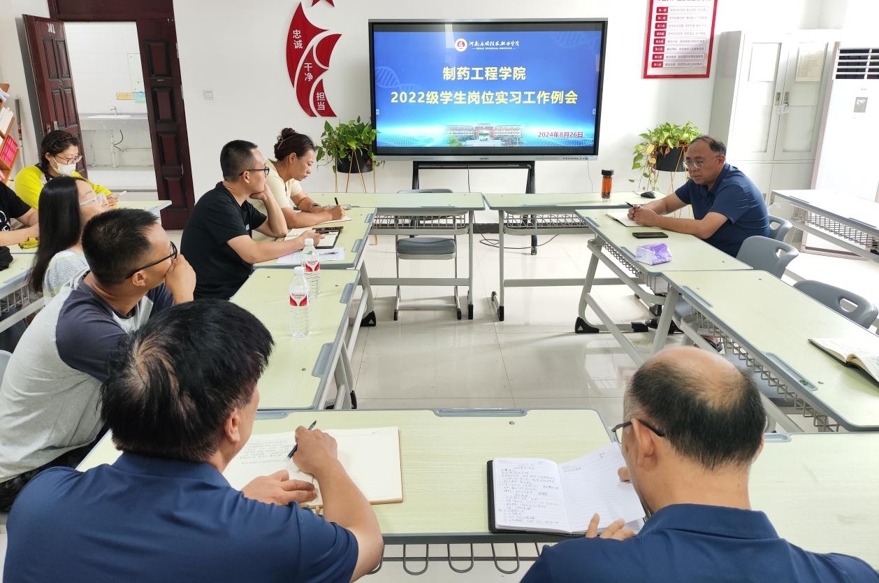 2024 年 8 月 26 日上午9:00,制药工程学院召开了 2022 级学生岗位实习工作例会,旨在总结2022级学生实习情况,交流经验,为进一步提升实习质量和学生综合素质奠定基础。制药工程学院院长吕玮、副院长高莉丽等相关老师参加此次会议,会议由制药工程学院院长吕玮主持。