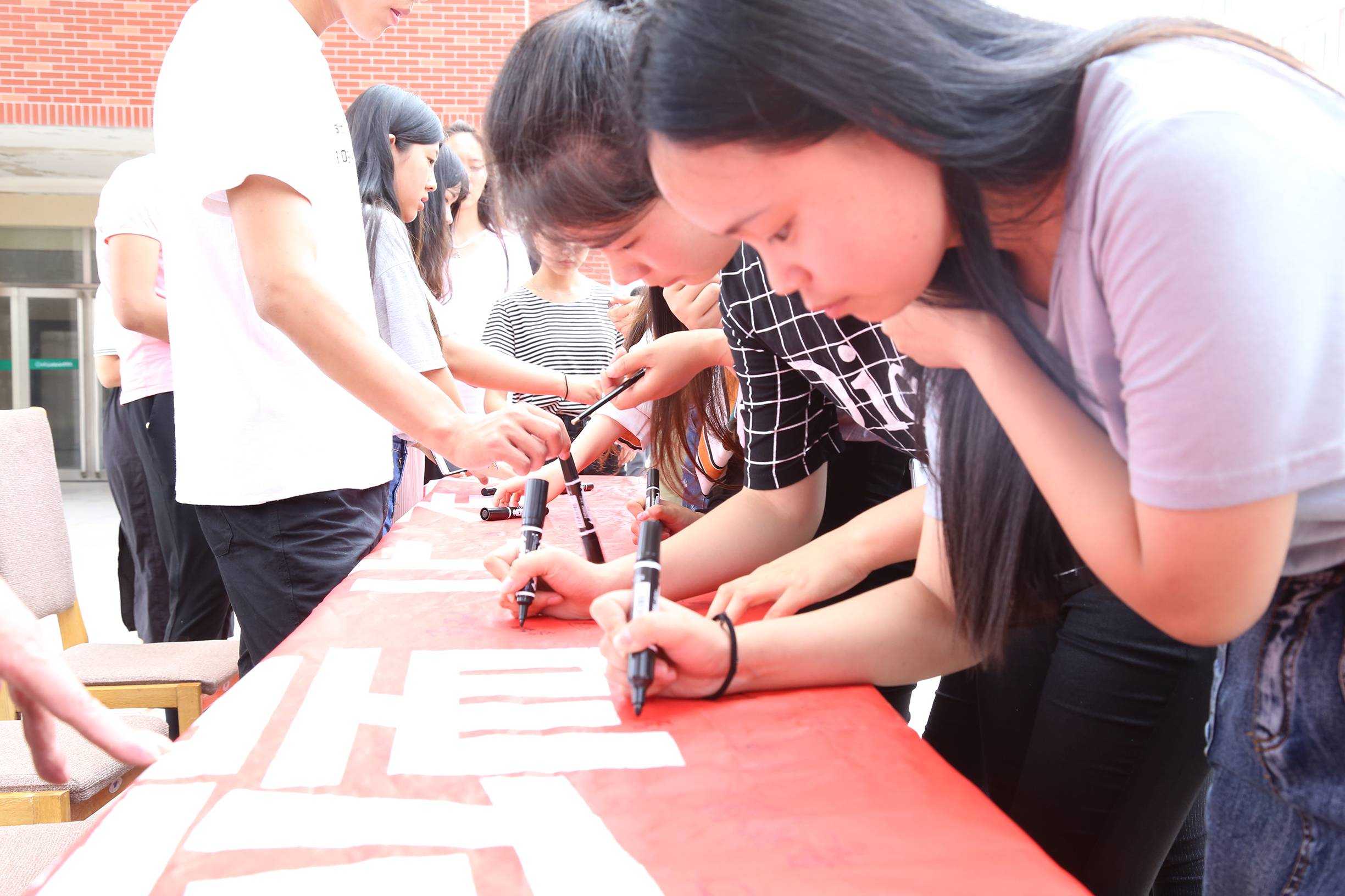 活动的最后,各班团支书带领自己班的同学有序得在“端正考风 诚信考试 从我做起”的横幅上签字。