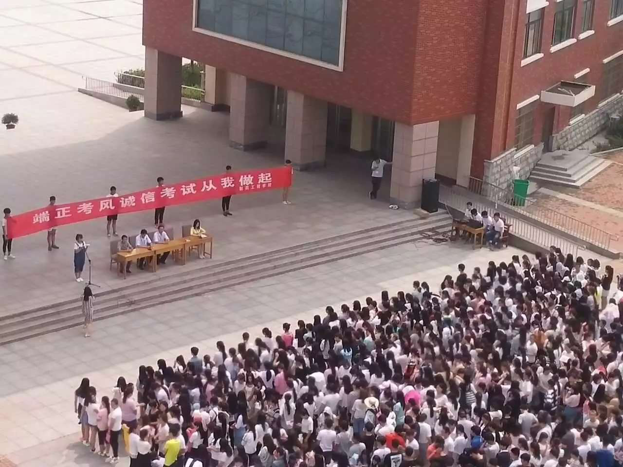 诚实守信,是我中华民族优良传统。千百年来,人们讲求诚信,推崇诚信。诚信之风质朴醇厚,历史越悠久,诚信之风越光大华夏,充盈中华。为了进一步使学校的诚信文化向纵深发展,充分发挥校园诚信文化在青少年思想道德建设中的作用,2016年6月8日,制药工程学院在中心广场举办了主题为“端正考风诚信,考试从我做起”签名仪式,参加活动的领导老师有:制药工程学院院长韩恩远,党总支书记张亚东,教学秘书刘晓磊,院办主任孙高磊,团总支书记薛婵及全院学生。