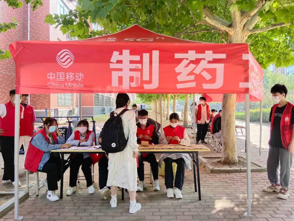 制药工程学院书记窦传斌、副书记白小茗为新生报道精心设计了地标打卡点,为大家送上学生自己制作的奶片,受到一致好评。