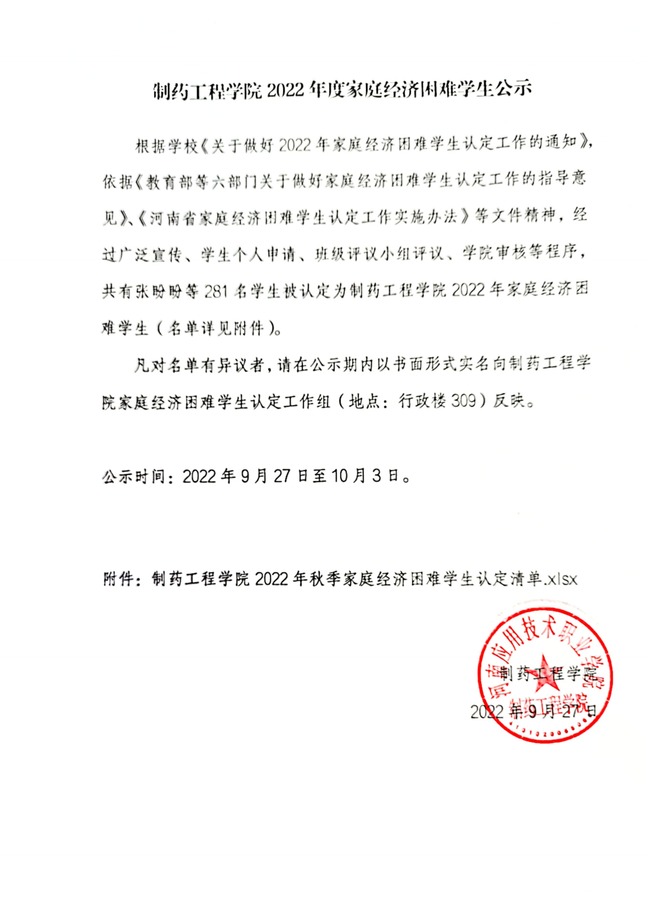 制药工程学院2022年秋季家庭经济困难学生认定 清单.xlsx