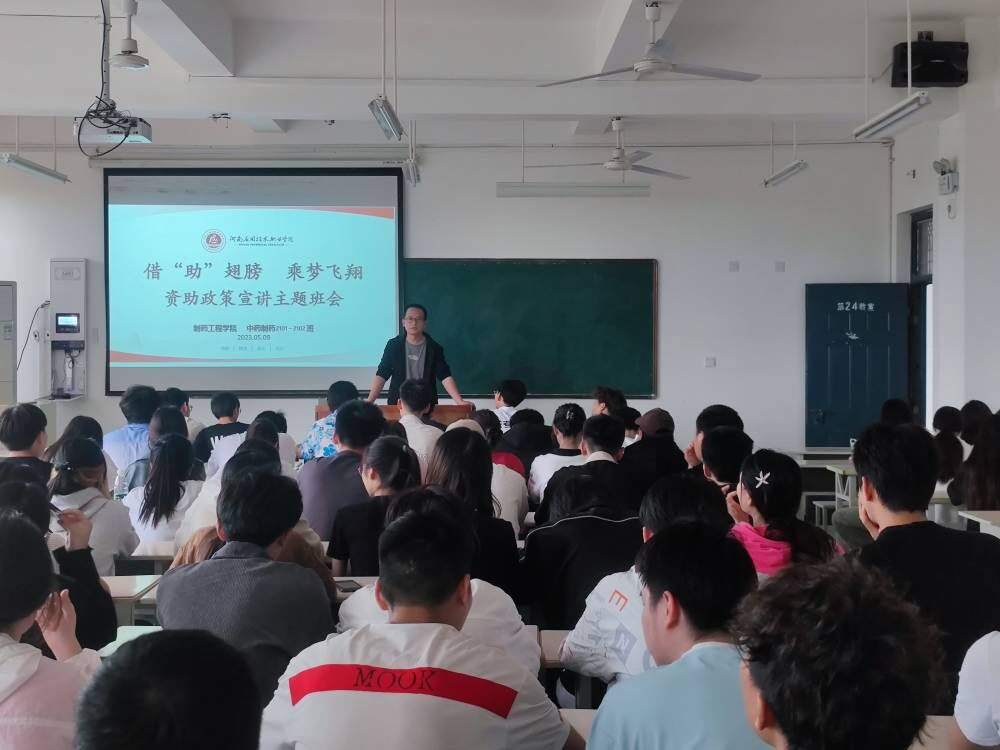 为使同学们更好的了解学校资助政策,推进我院资助工作平稳有序进行,根据学校整体工作安排,2023年5月9日-10日,制药工程学院21级、22级各班开展以“借“助”翅膀,乘梦飞翔”为主题的资助政策宣讲。