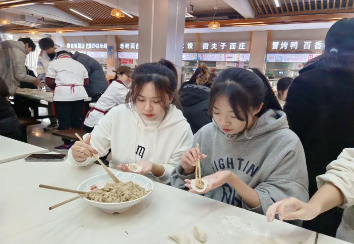 为加强同学们对中华优秀传统文化的认同感,丰富劳动教育实践,同时增强集体凝聚力,12月21日在学院党总支书记窦传斌和副书记白小茗的带领下,中药制药2201-2202班的全体同学齐动手、共参与,一起开展“冬饺去岁寒,陪伴暖校园”趣味包饺子活动。