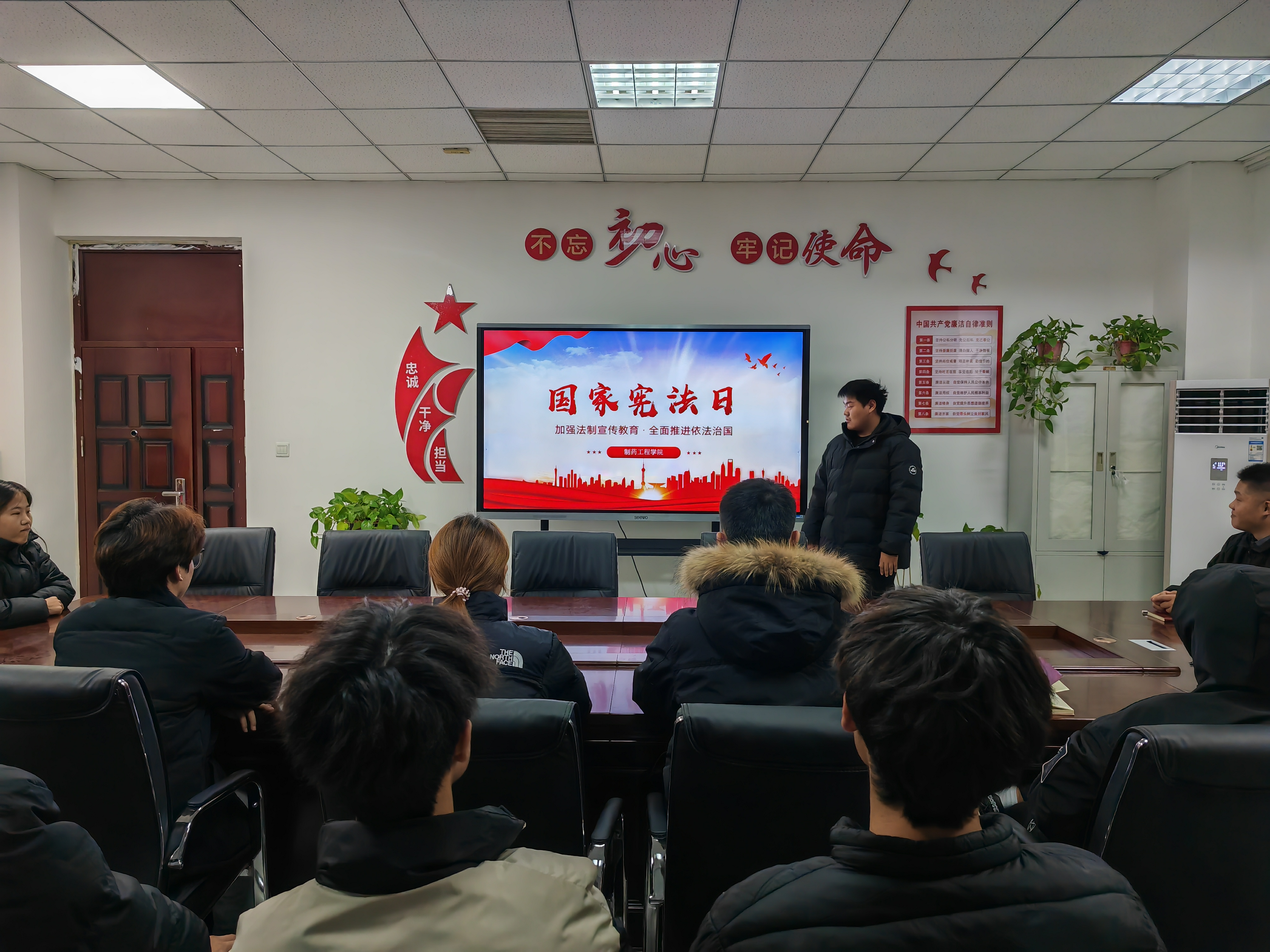 会议开始,由学习科创部部长程翔带领大家学习宪法,程翔通过宪法宣传教育图片、视频以及案例分析,向大家介绍了宪法的基础知识以及公民的基本权利与义务,认识到宪法于个人、校园、社会的重大意义,表示今后要持续学习并学以致用。接着,祝海辰明确了学生会近期工作,强调各部门之间要团结合作、互相配合。同时,各部部长提出工作中的问题,学生会干部对这些问题进行讨论,提出多种多样的解决措施。