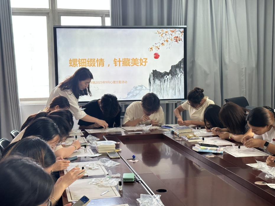 为助力学生释放学业压力、传承中华优秀传统文化,9月16日,性一交一乱一乱一情在南院办公楼301举办“螺钿缀情,针藏美好”心理主题活动。学院学生积极参与,在非遗工艺的创作体验中舒缓情绪、收获成长。