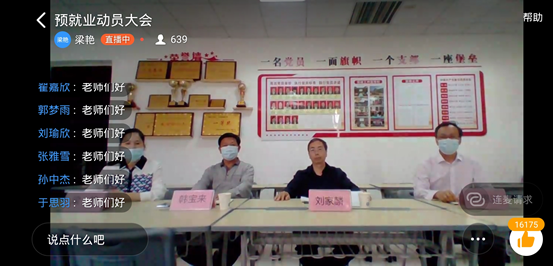 5月12日下午3点,制药工程学院和医药学院2021届毕业生预就业动员大会通过钉钉直播举行。制药工程学院院长韩恩远、医药学院院长韩宝来、就业处刘家麟老师出席本次会议,会议由医药学院党总支副书记梁艳老师主持。制药工程学院和医药学院的2021届毕业班辅导员及全体学生参加了本次线上预就业动员大会。